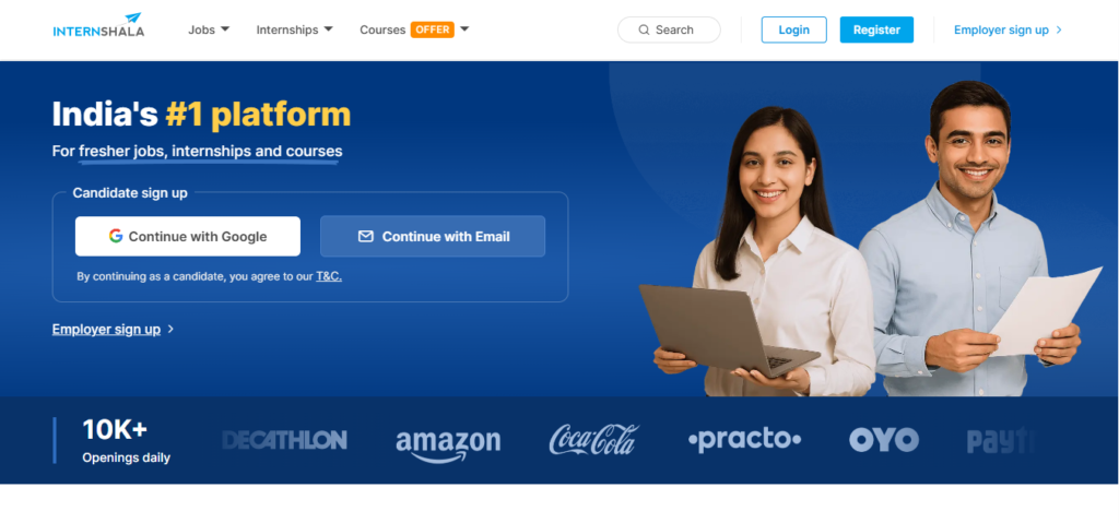 Pricing: Job posting plans available. Check internshala.com for current employer pricing.
