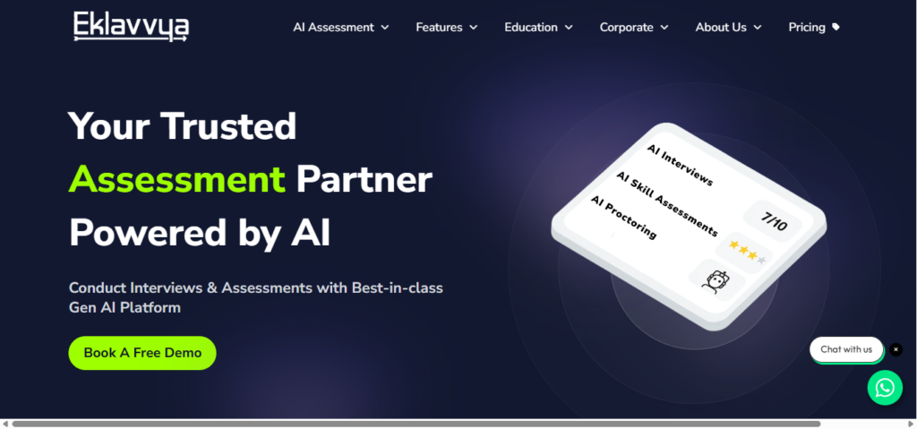 Eklavvya is the most India-relevant tool on this list for assessment automation. It’s specifically designed for Indian universities and institutions conducting large-scale examinations. The AI generates subject-specific question banks instantly across multiple difficulty levels and formats, and its NLP-powered system can even evaluate subjective/descriptive answers with high accuracy — a feature that saves exam evaluators enormous amounts of time.